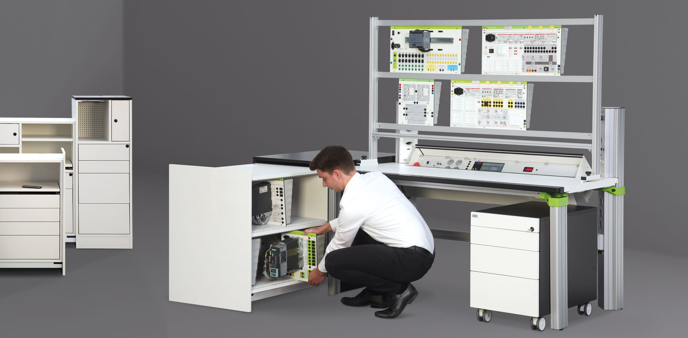 Training in electrical professions is very practice-oriented – and it has to be in order to optimally prepare electrical engineering trainees for their professional life. Whether electronics technician for industrial engineering, industrial plants, automation technology or electrical systems in buildings – practical training is essential. A modern teaching system that covers all areas of learning and enables a steep learning curve helps here.