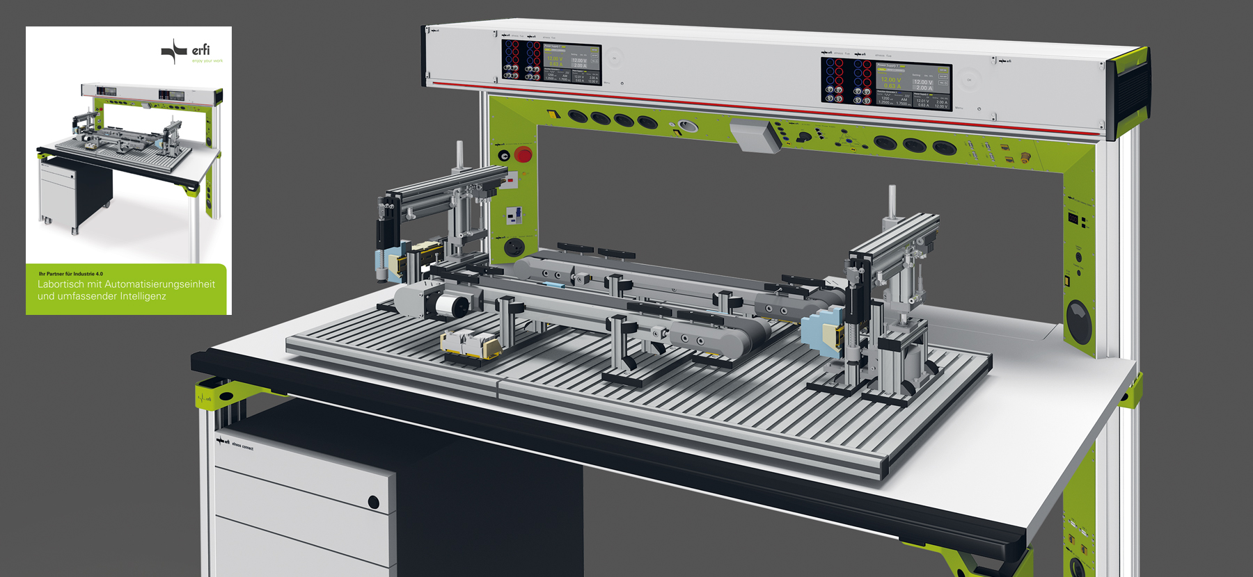 erfi teaching systems and the excellently prepared experiments of the Didactic program convey the teaching content in the shortest possible time. As a market-leading company, erfi thus offers the complete range of electrotechnical equipment for training facilities of all kinds. The erfi teaching systems for training facilities in electrical engineering and industry lay an important foundation for later success in professional life.